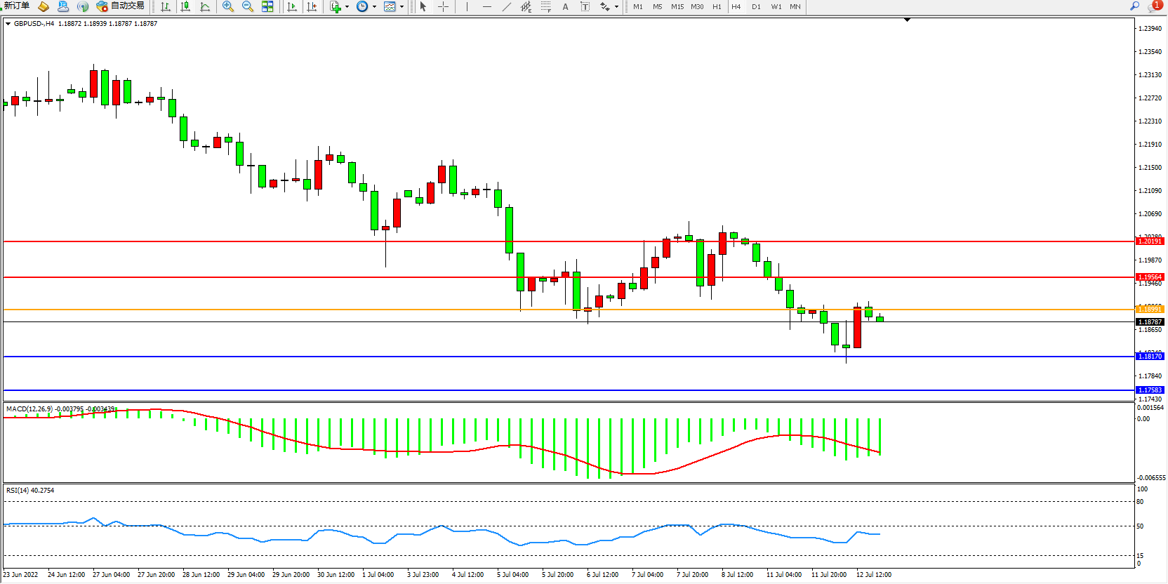 英镑兑美元维持1.18787附近震荡,英国央行在8月4日大规模加息50个基点的可能性接近70%。自12月以来,该央行已经五次提高借款成本。