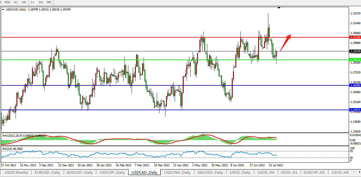 日线图看:汇价大幅回测并试探多空转折区域,MACD于0轴上开始走弱且量能小幅缩量,RSI持续走弱,预计短期汇价大概率将进一步上行。