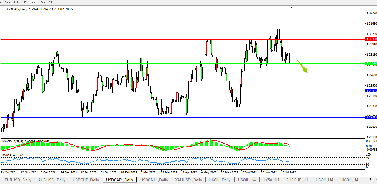 USDCAD:1.2850支撑破败