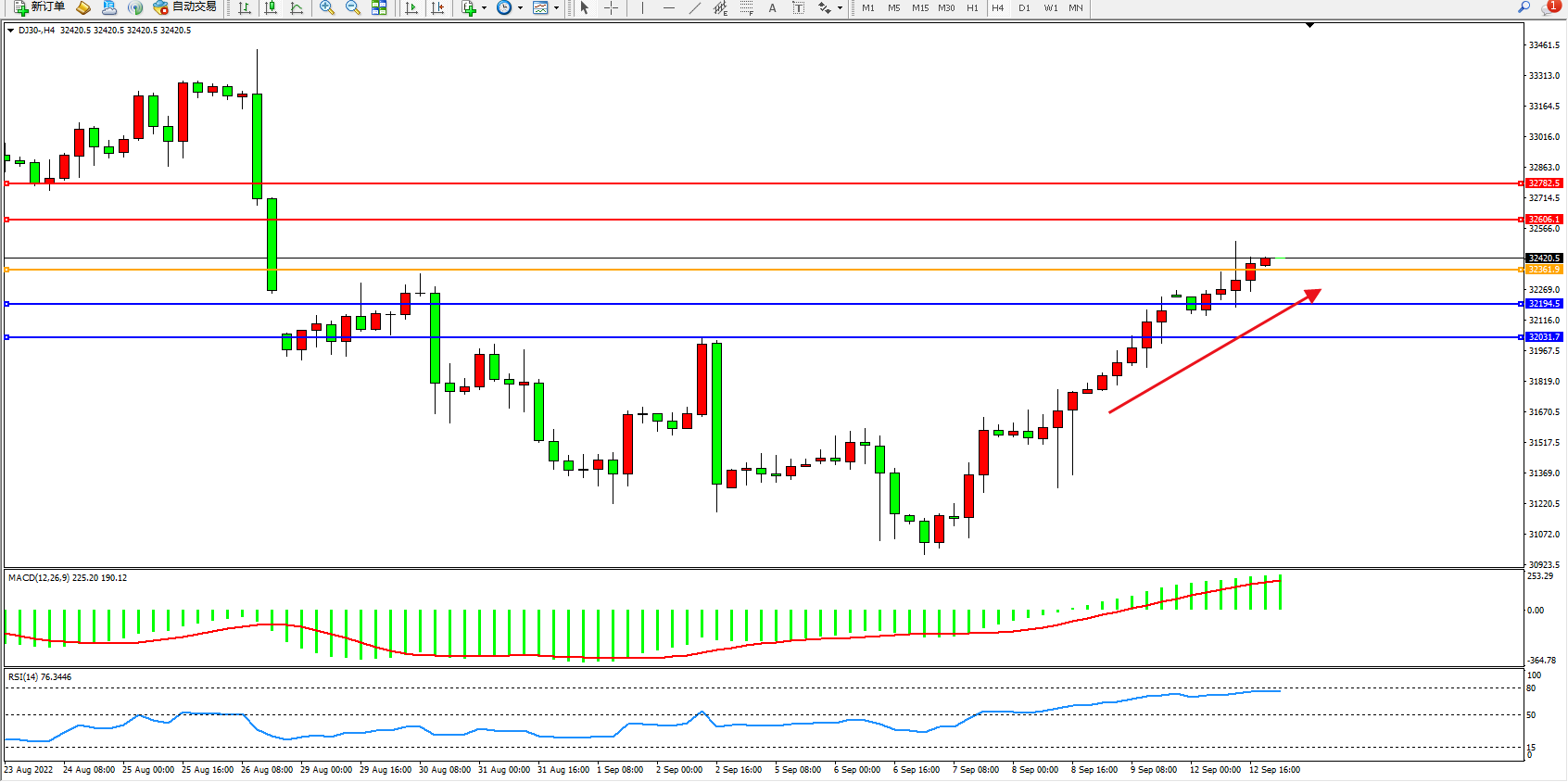 道琼斯指数9月12日(周一)收盘上涨229.63点,涨幅0.71%,报32381.34点;受到美元指数再次大幅下跌的推动。美国国债收益率在本周伊始下滑,全球股市普遍走强,美股期货走势暗示美股将高开。