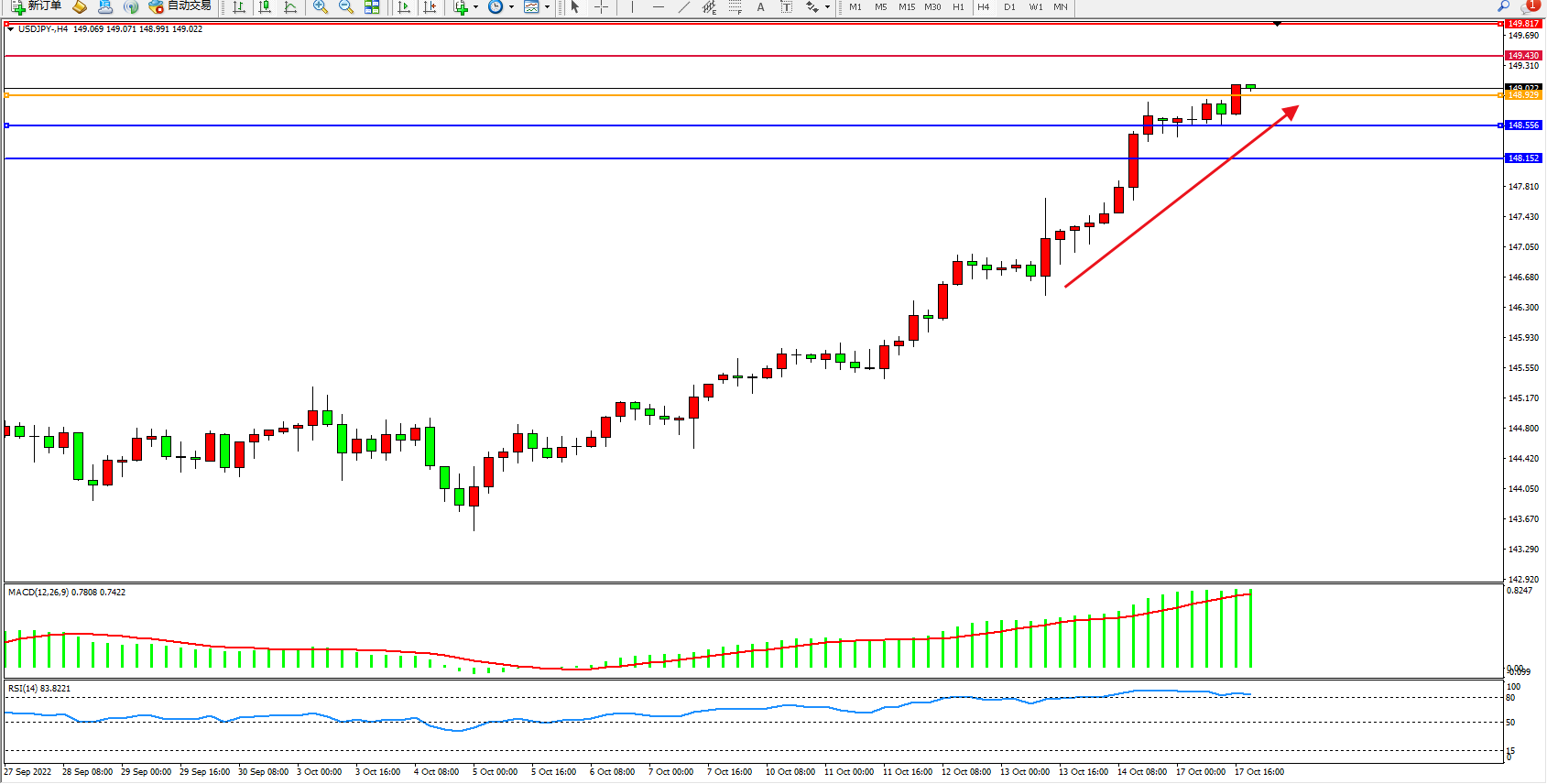 交易策略:148.529上方看涨,目标149.430、149.817
