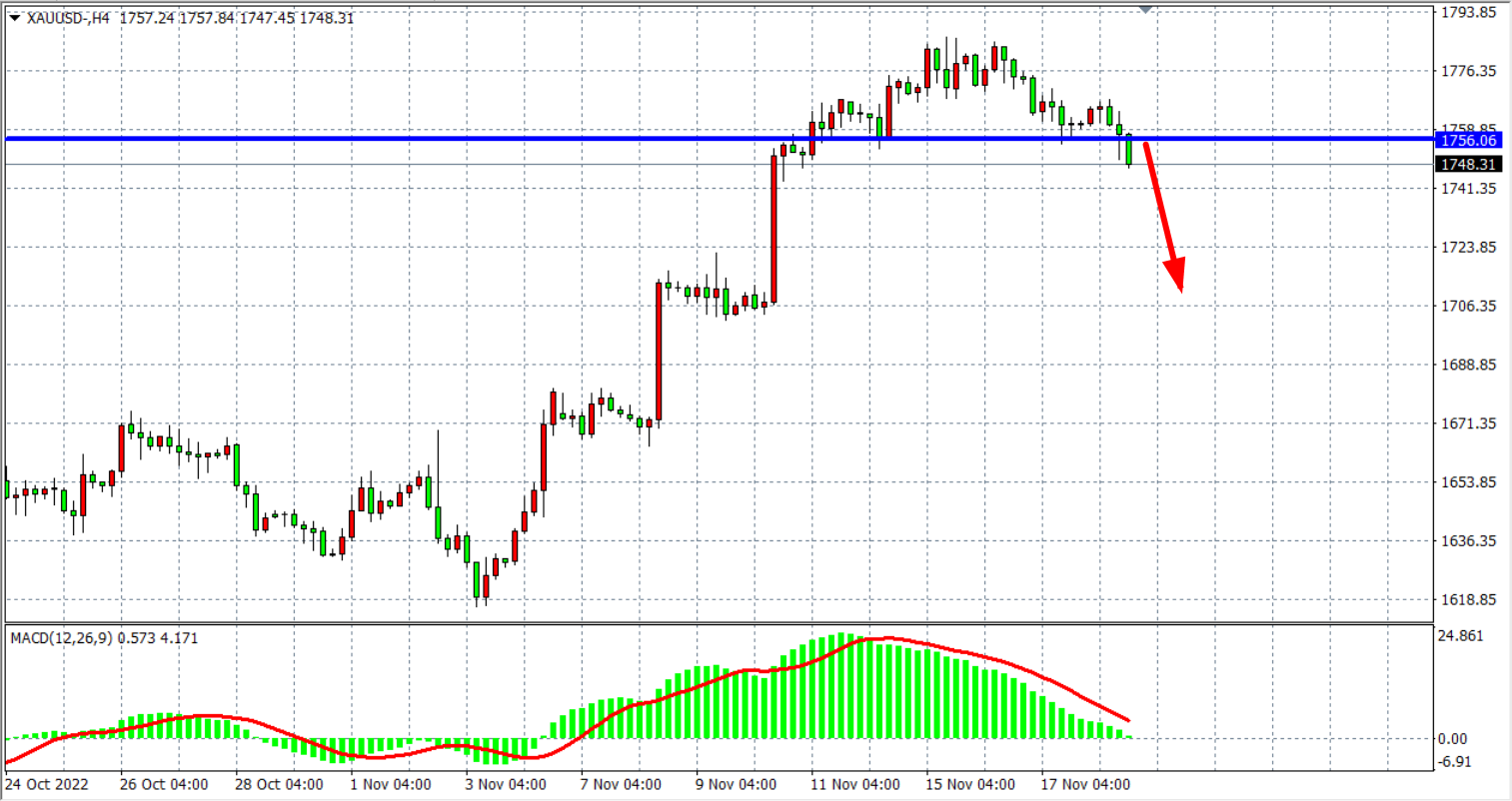 备选策略:在1756.00 之下看跌,目标1740.00 1730.00