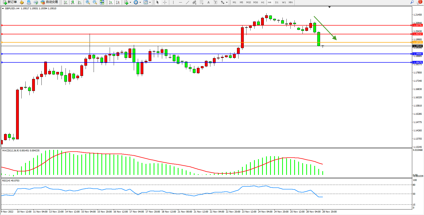 交易策略:1.19720下方看跌,目标1.19006、1.18478
