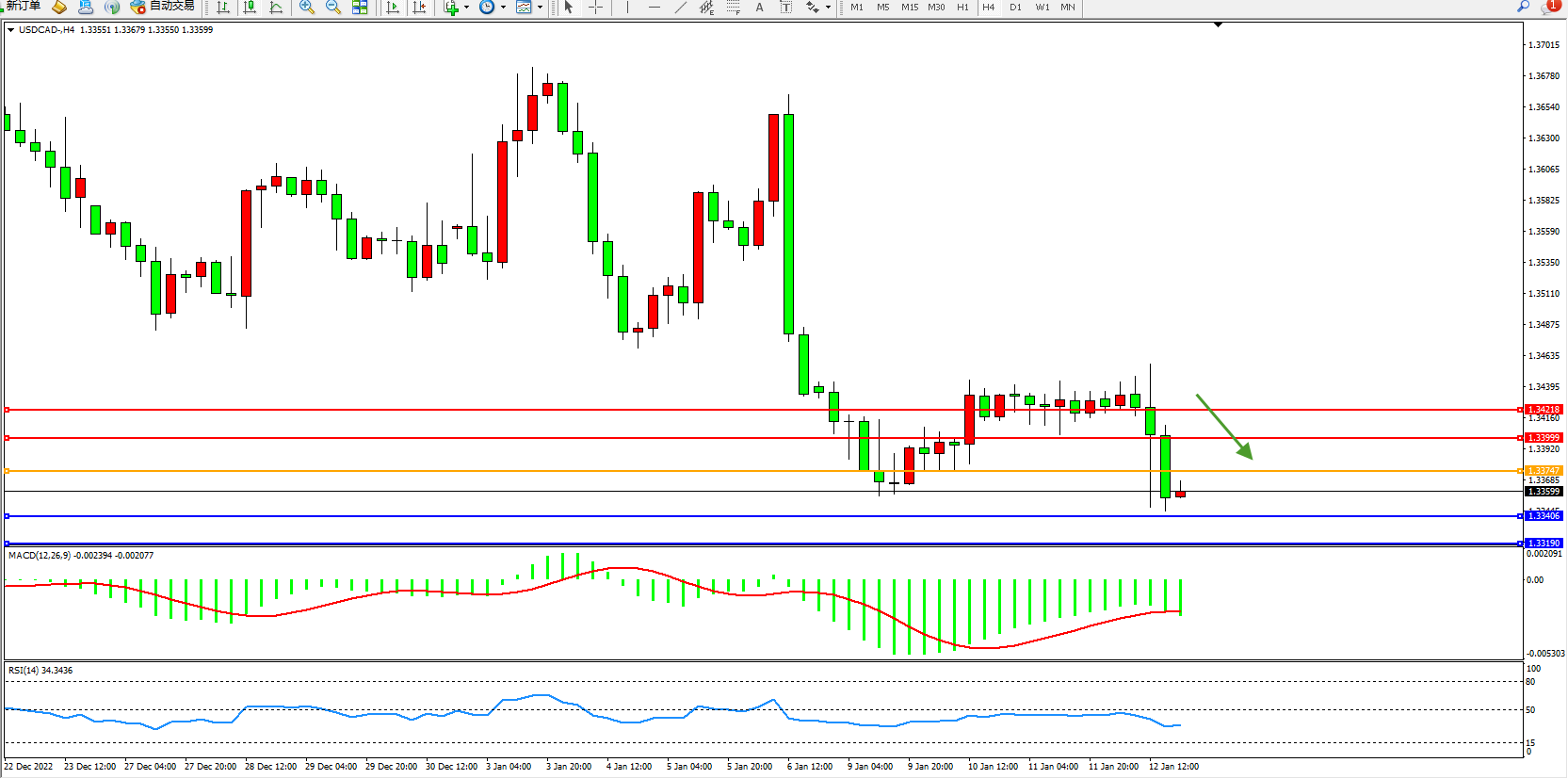 美元兑加元维持1.33599附近震荡,美国12月整体CPI年率符合预期的6.50%,前值为7.10%;12月核心CPI年率符合预期的5.70%,前值为6%。核心通胀年率创2021年12月以来最低水平。
