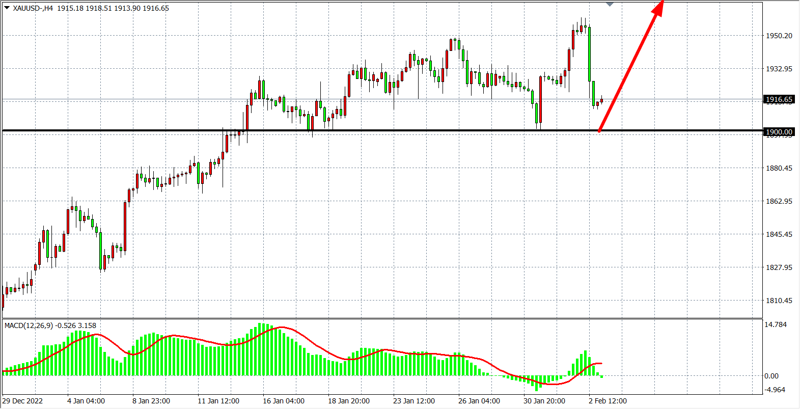 现货黄金XAUUSD    4小时图