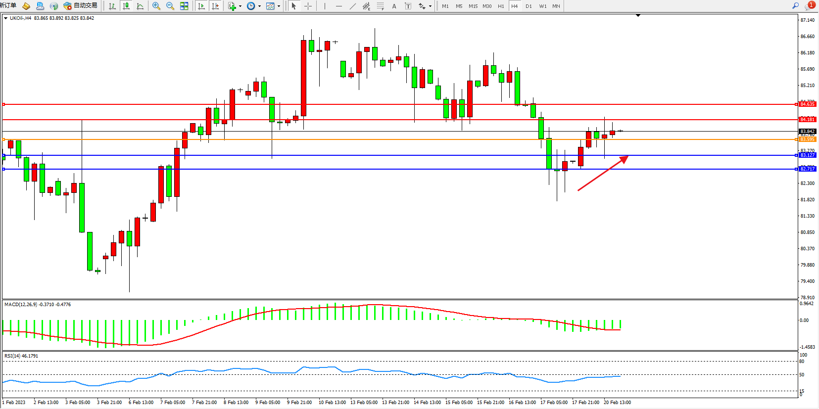 布油UKOil——4小时K线图显示: