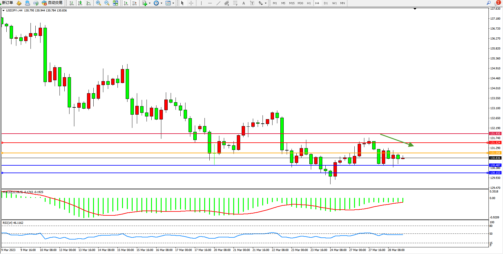 交易策略:131.058下方看跌,目标131.524 131.930