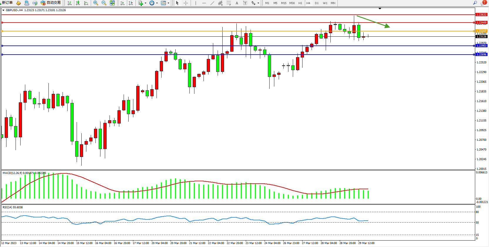 英镑兑美元维持1.23126附近震荡,英国3月食品杂货通胀率再度上升,达到17.5%的纪录高点,这或许将迫使英央行不得不继续高举货币收紧大棒来进行抗通胀。在不至于使英国经济陷入衰退前景的前提下,或许在息差因素上,英镑兑美元也相应地能获得些许的支撑。