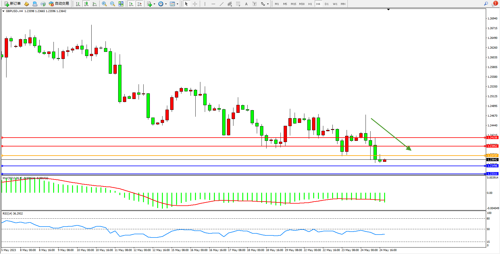 交易策略:1.23737下方看跌,目标1.23496 1.23311