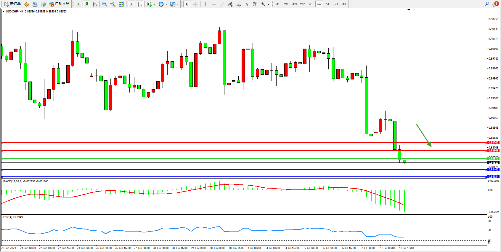交易策略:0.88570下方看跌,目标0.88440  0.88354