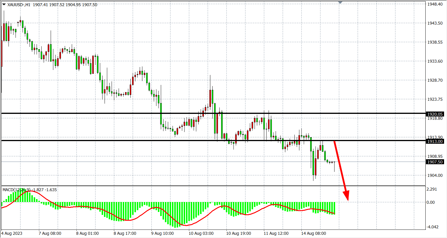 周一(8月14日)由于此前PPI略高于预期可能为美联储鹰派提供了更多弹药来主张再次加息,美指站上103关口,创1个多月新高,美债收益率连续第四个交易日攀升,被称为“全球资产定价之锚”的10年期国债收益率盘中涨至4.209%,为去年11月8日以来最高水平,受此拖累现货黄金跌破1910关口,刷新7月6日以来新低,最终收跌0.32%。