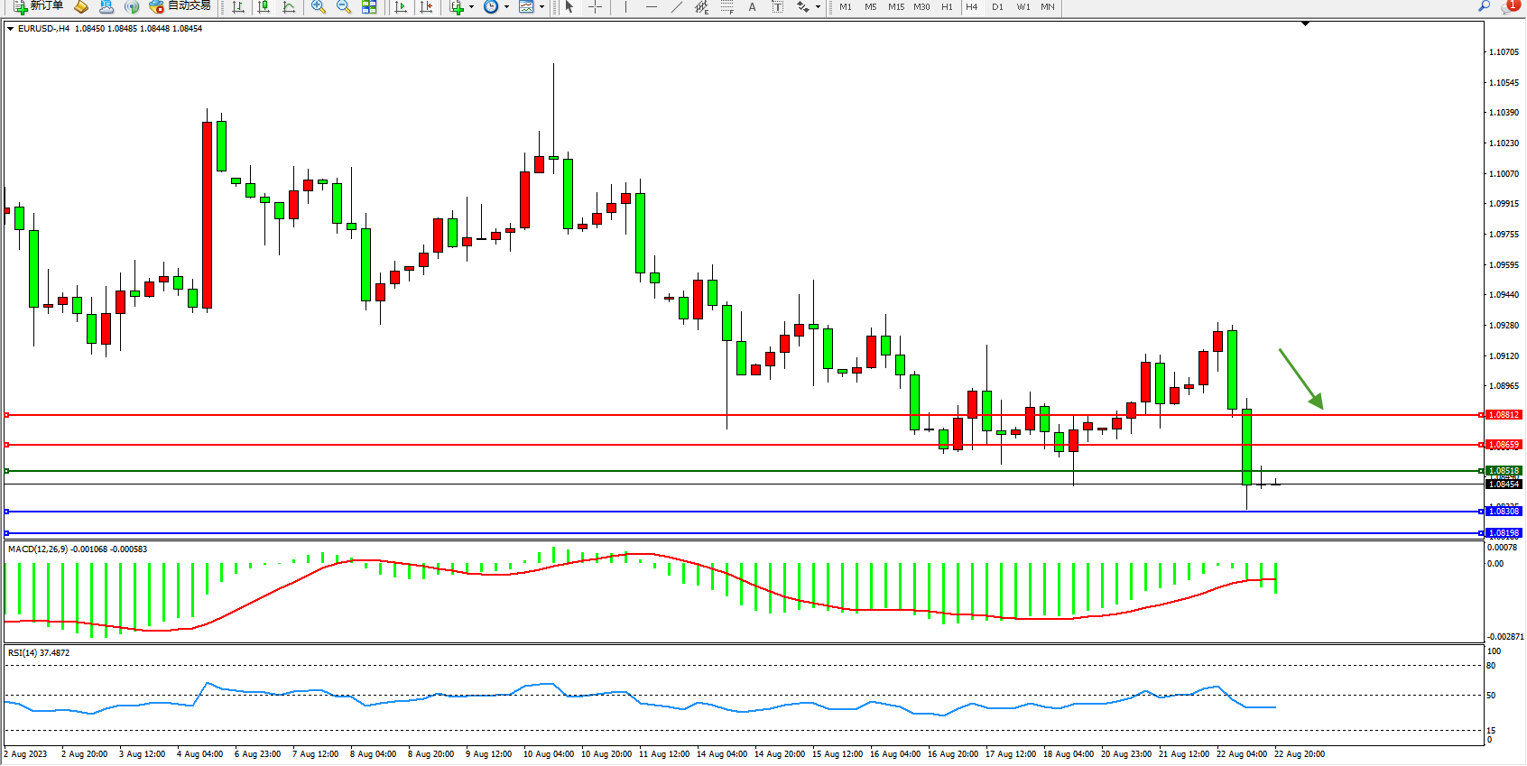 交易策略:1.08518下方看跌,目标1.08308  1.08198