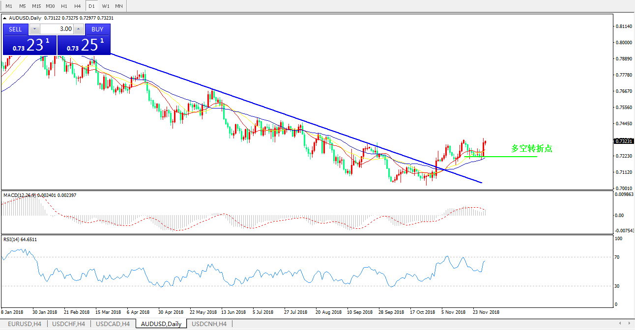 交易策略:在0.7218之上,看涨,目标价位为 0.7350,然后为0.7385