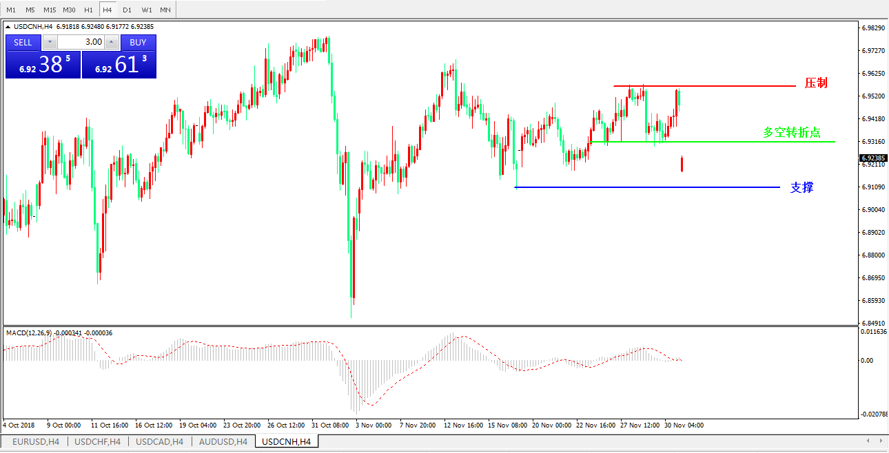 支撑位:6.9088   6.8870     6.8600