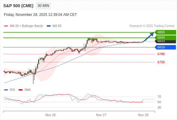 在 6810 之上,看涨,目标价位为 6845 ,然后为 6865 。