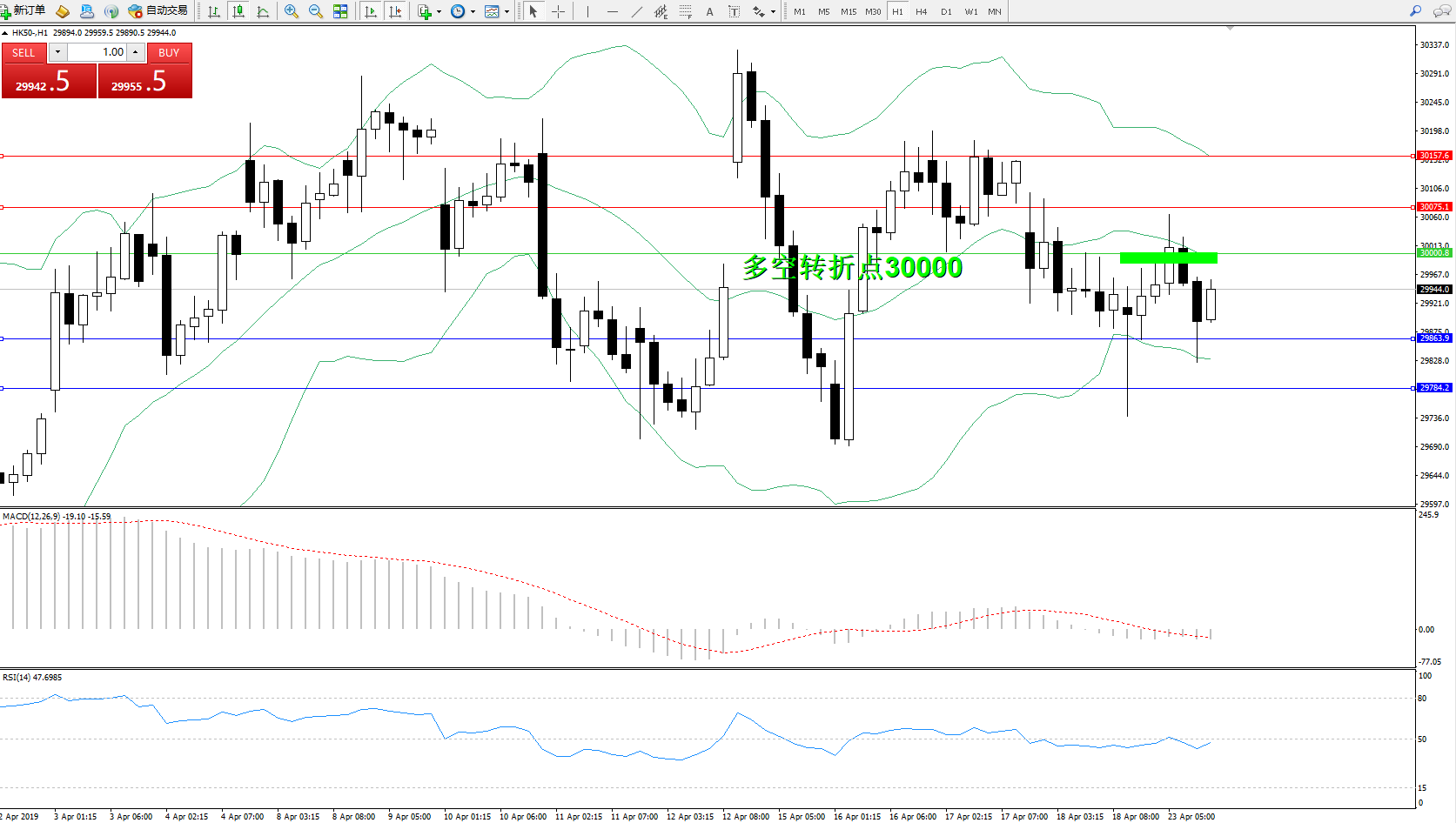 亚洲股市涨跌互现,其中上证综指失守3200点,深证成指跌约1%,恒指收平,港股为复活节假期后首日开市,早上低开180点后再反覆向下,恒指低见29742,最多跌367点。香港恒生指数低开后走高,至接近平盘线水平后维持震荡,最终收平,报29963.24点。在低位有买盘趁低吸纳及跟随A股反弹,曾倒升241点。但市况稍见淡静,也欠缺动力,恒指再度回落,持续在低位横行。 由于政治局在会议上表示,对目前经济前景转趋乐观。市场担心推出的政策已见顶,不会再推出宽松政策,也预期A股需要稍作调整。