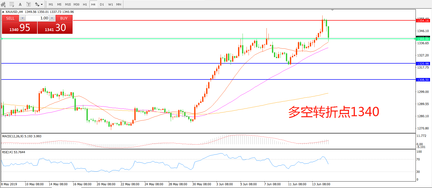 交易策略:在1340.00之上看涨,目标1354.00   1373.00