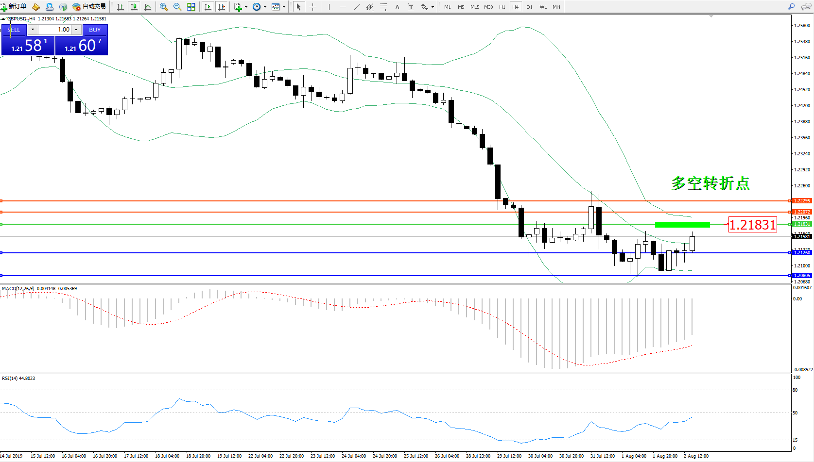 交易策略:1.21831下方看跌,目标1.21260、1.20805