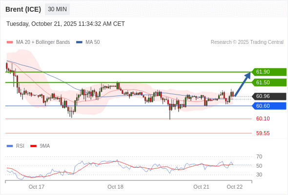 在 60.60 之上,看涨,目标价位为 61.50 ,然后为 61.90 。