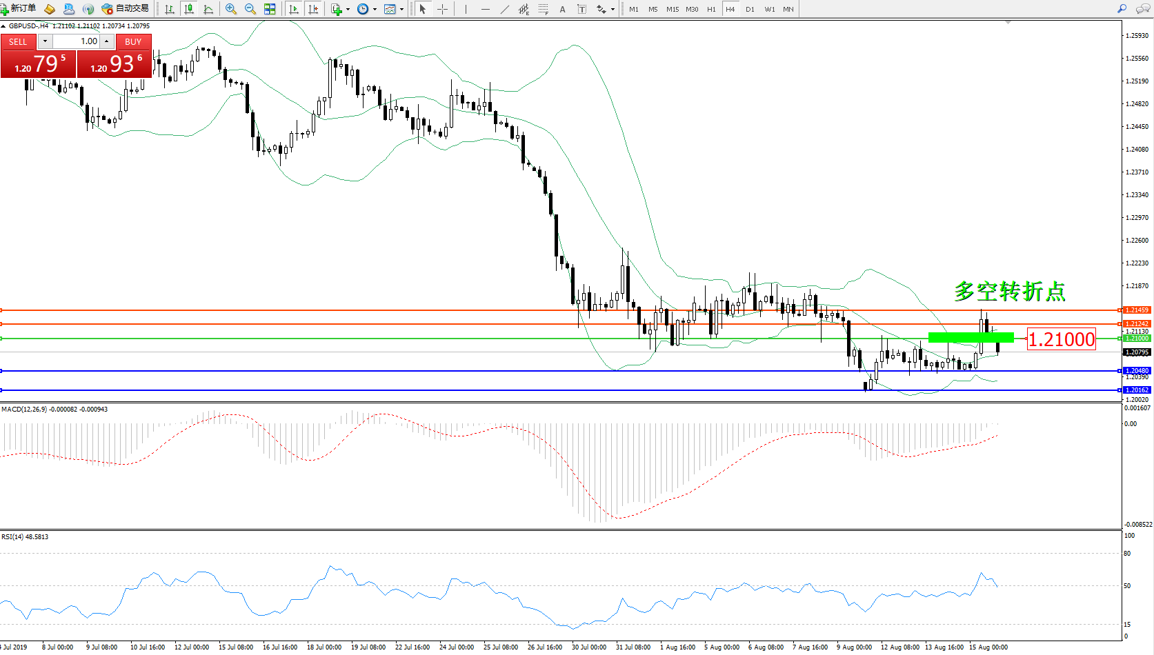 交易策略:1.21000下方看跌,目标1.20480、1.20162