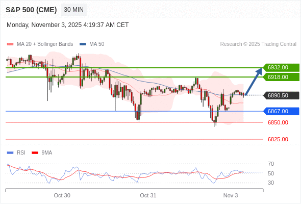 交易策略: 在 6867.00 之上,看涨,目标价位为 6918.00 ,然后为 6932.00 。