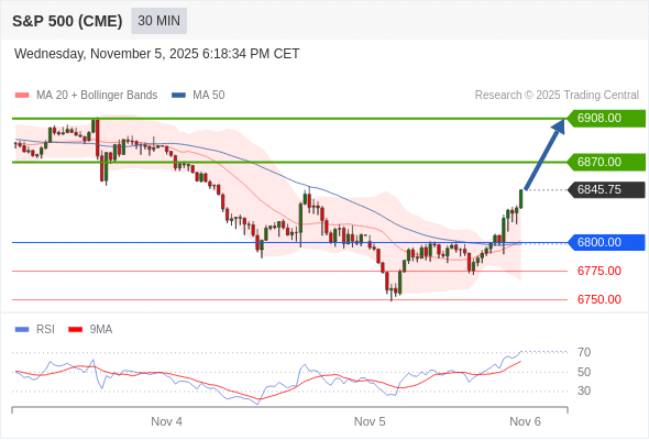 在 6800.00 之上,看涨,目标价位为 6870.00 ,然后为 6908.00 。