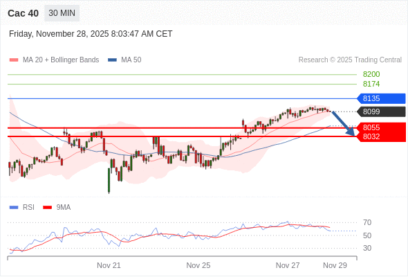 在 8135 之下,看跌,目标价位为 8055 ,然后为 8032 。
