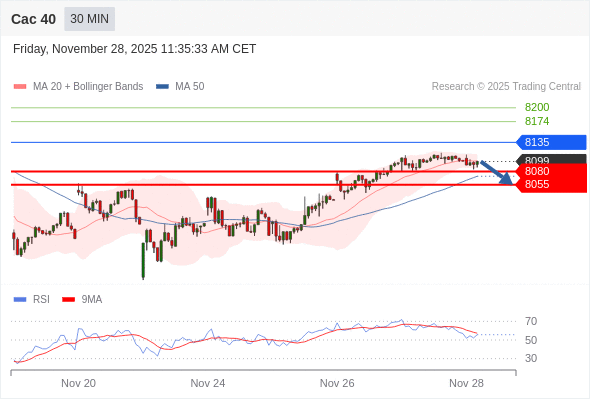 在 8135 之下,看跌,目标价位为 8080 ,然后为 8055 。