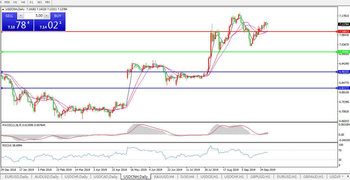 在岸人民币在周一(9月30日)收低逾150点,尾盘录得加速跳跌,因节前最后交易日购汇需求被集中释放,与此同时,美元表现继续坚挺也令人民币汇价承压。在此后国庆长假来袭背景下,市场交易需求在最后时刻得到了集中释放;分析师指出,日内中国PMI数据大体符合预期,显示国内经济企稳,并且,在周末的最新消息动向之后,投资者对全球贸易前景继续持有乐观预期,但是长假来临前的微妙气氛显然盖过了基本面消息的影响。预计在节后随着消息面的进一步明朗化,人民币汇价会重新作出走势方向的决断。 与此同时,美元指数在继续维持在99上方的高位水平,因投资者相比其他发达经济体仍然更看好美国。虽然上周以来经济数据显示美国经济前景隐忧犹存,但是相比深陷多事之秋的欧洲而言仍是资金的理想去处。而美元的强势也对包括人民币在内的非美货币造成拖累。