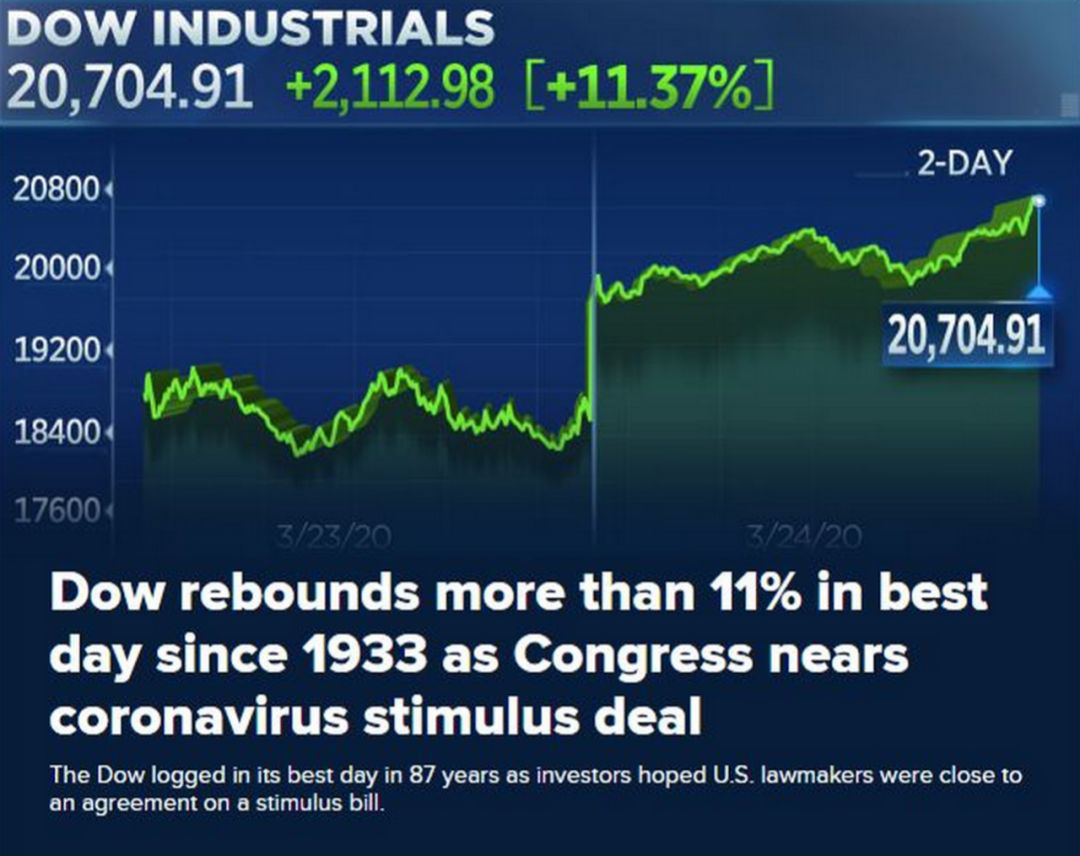刺激美股如此暴涨的助推器,正是这份万亿美元刺激计划带来的转机。当天美股开盘后,美国众议院议长佩洛西表示,她非常乐观地认为国会将在接下来的几个小时内达成经济刺激协议。她称,所有人都同意应该完成刺激计划立法。