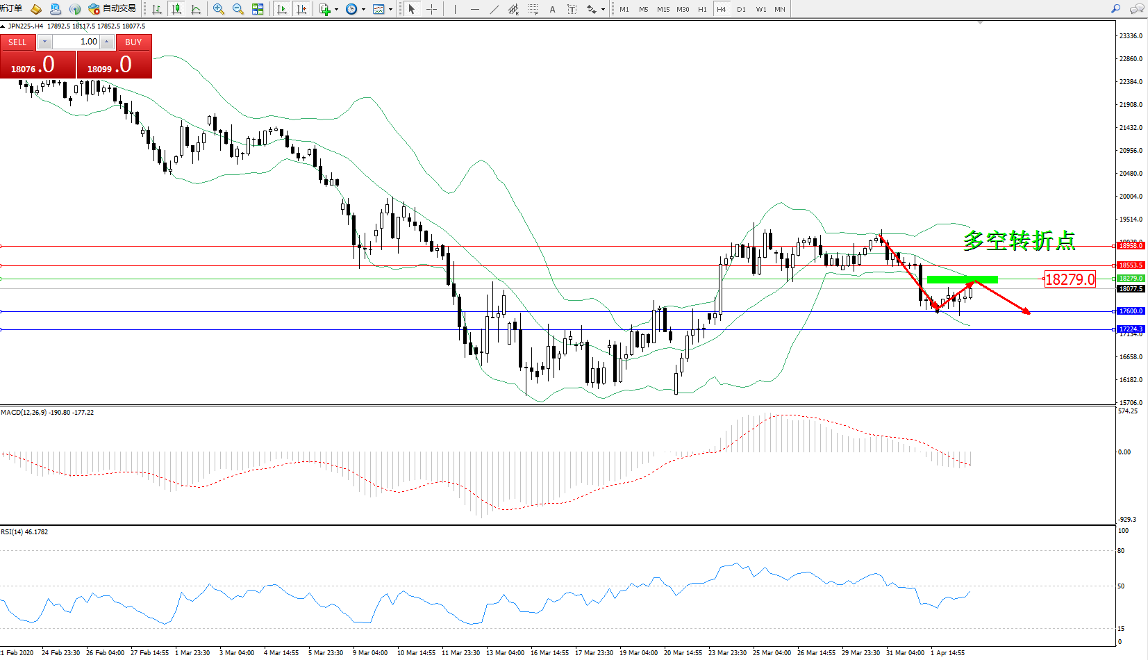 交易策略:18279下方看跌,目标17600、17224