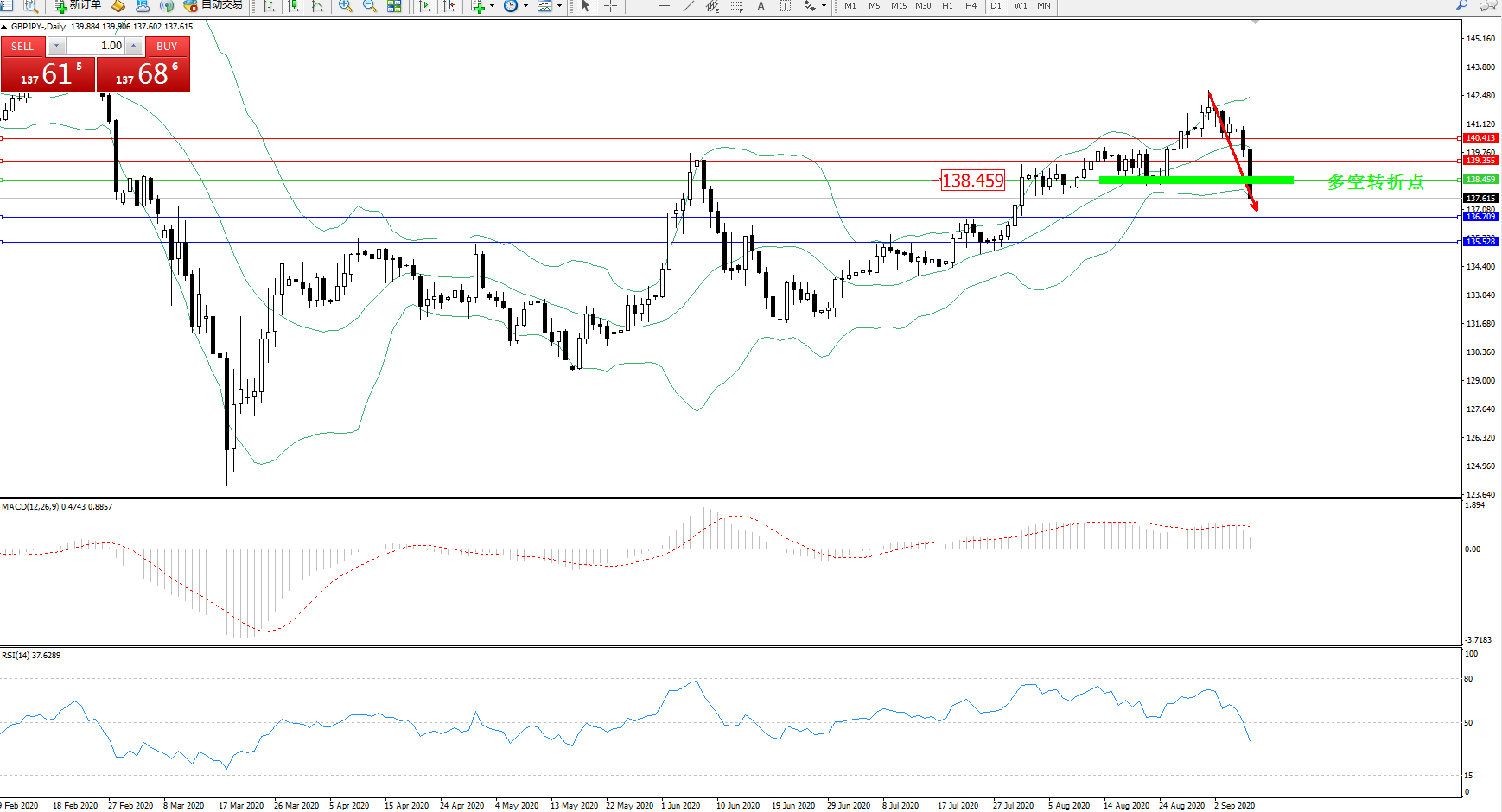 英镑兑日圆高位下挫至137.377附近徘徊,英国脱欧的新一轮贸易谈判于周二展开,英国在谈判前夕警告欧盟称,英国正在加强年底无协议脱欧的准备工作。双方在许多问题上分歧严重。英国已在1月31日退出欧盟,但关于双方贸易关系的谈判进展不大,达成新协议的期限为10月,而过渡期将在12月底结束。外交人员还在试图判断英国首相约翰逊究竟仅是口头威胁,抑或是真的准备以无协议的混乱局面为英退画下句点。英国政府的首席谈判代表再度宣称,英国并不畏惧无协议脱欧。无协议脱欧的可能性令企业界感到不安,英国欧盟事务顾问弗罗斯特(David Frost)再声明中说,“我们一直谈了六个月,不能把谈过的内容再来一遍。我们希望欧盟在看待我们作为一个独立国家的地位时,展现出更多务实精神。如果他们在剩下的有限时间里做不到这一点,那我们将按照欧盟与澳洲之间那样的条件进行贸易,我们正在加紧为年底做准备。”