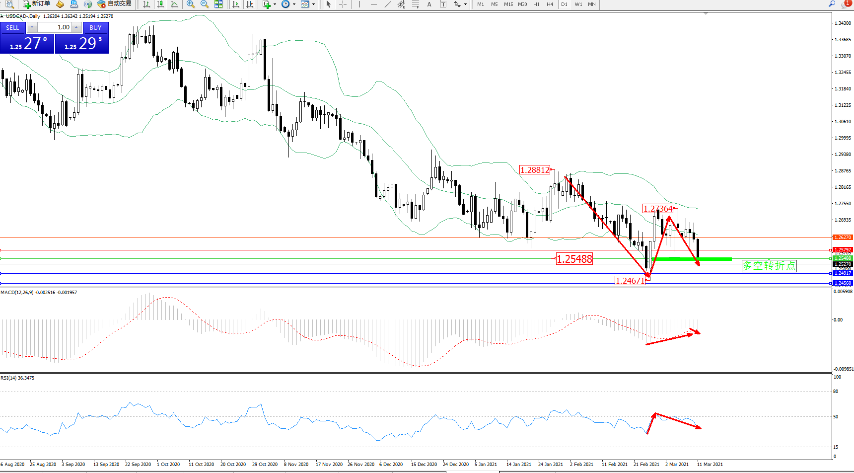 交易策略:1.25488下方看跌,目标1.24917、1.24560