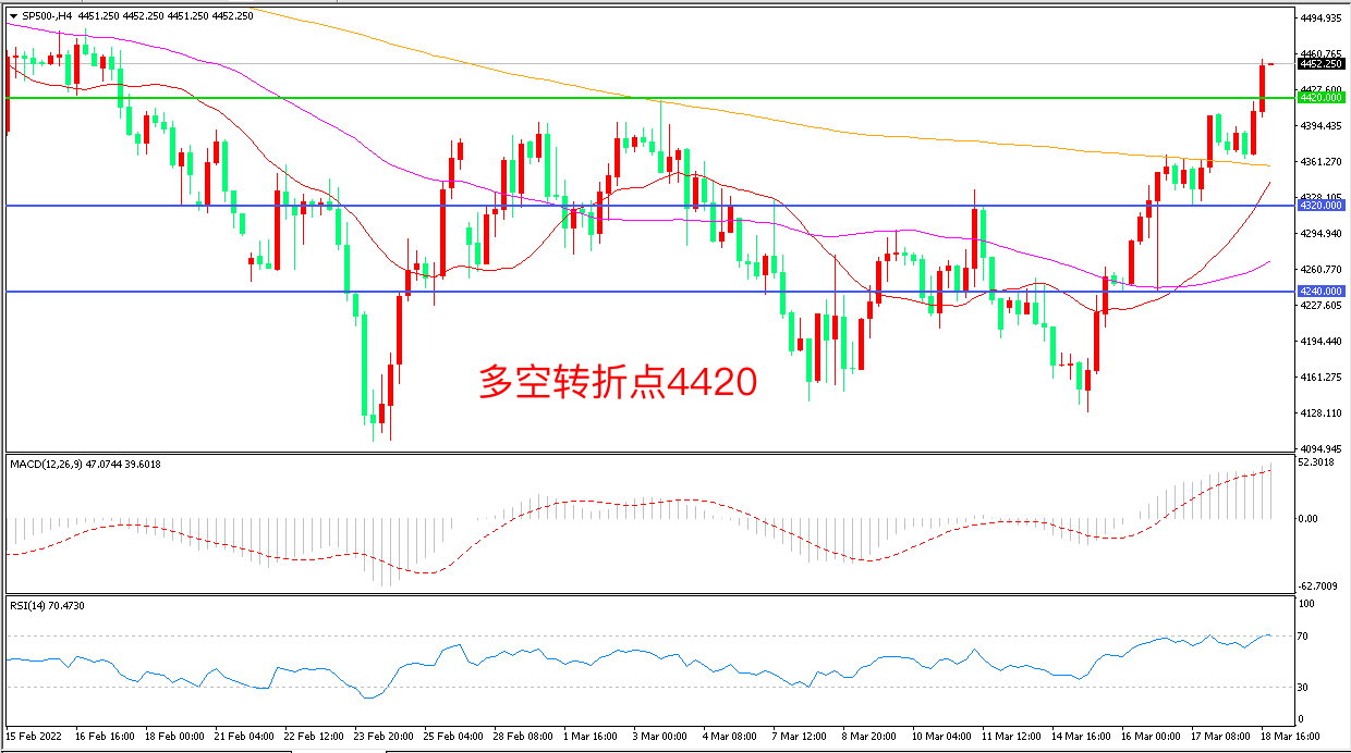 备选策略:在4420.00之下看跌,目标4320.00     4240.00