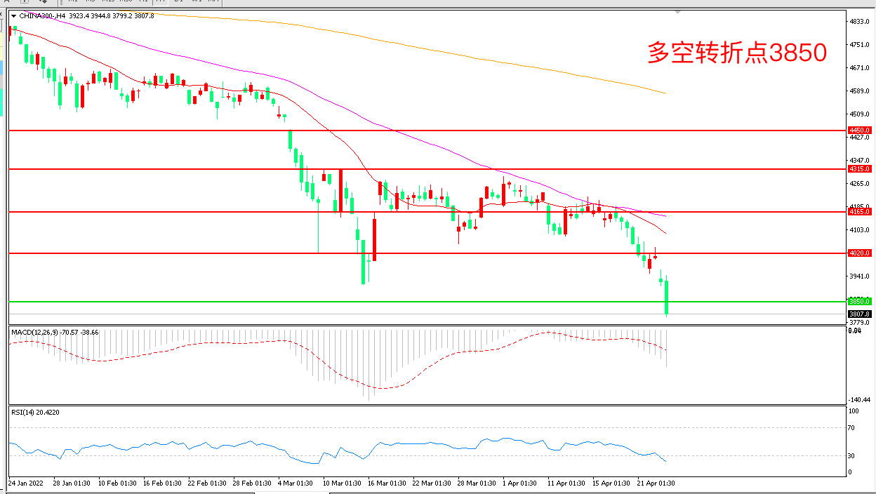交易策略:在3850.00之下看跌,目标3730.00                3600.00