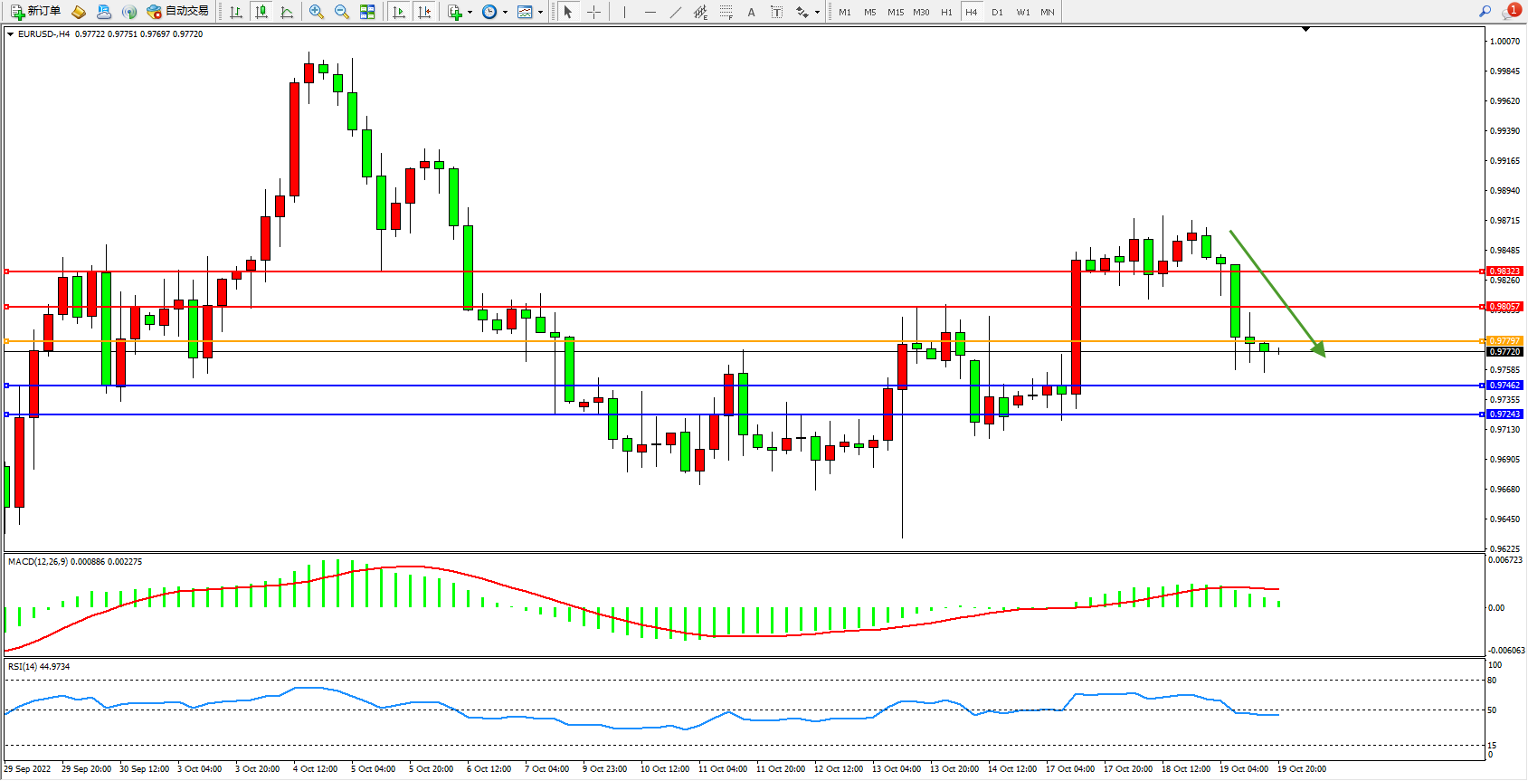 欧元兑美元维持0.97720附近震荡,市场上调了对欧洲央行的加息预期,并表示通胀加剧意味着欧洲央行的加息幅度可能超过此前预期。预计欧洲央行明年将再加息100个基点,终端利率将在明年6月升至3.5%,而此前预计为在2月升至2.5%。