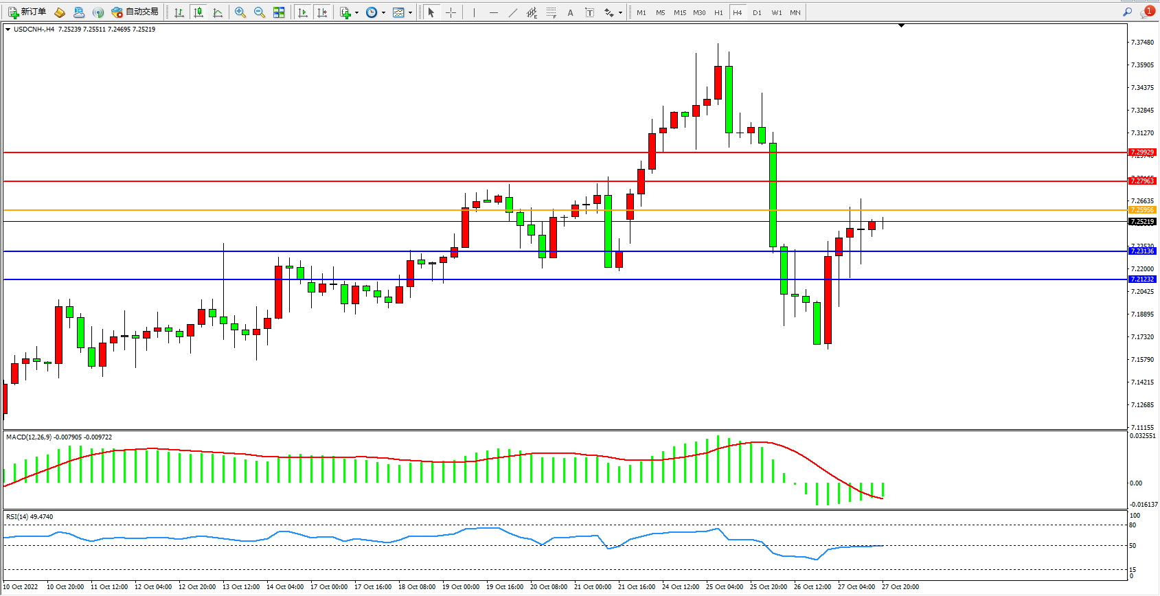 备选策略:7.25956上方看涨,目标7.27963、7.29929