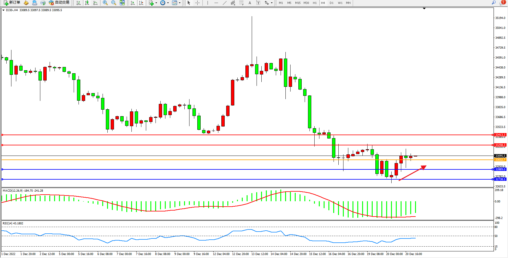 道琼斯指数12月20日(周二)收盘上涨92.47点,涨幅0.28%,报32850.01点;美国的经济数据也在恶化,美联储可能过度使用其限制性措施,因此明年将不得不再次大幅下调关键利率,这将对美元不利。在圣诞节前夕,市场上的流动性越来越少。未来几周美国股市的处境可能会更加艰难。