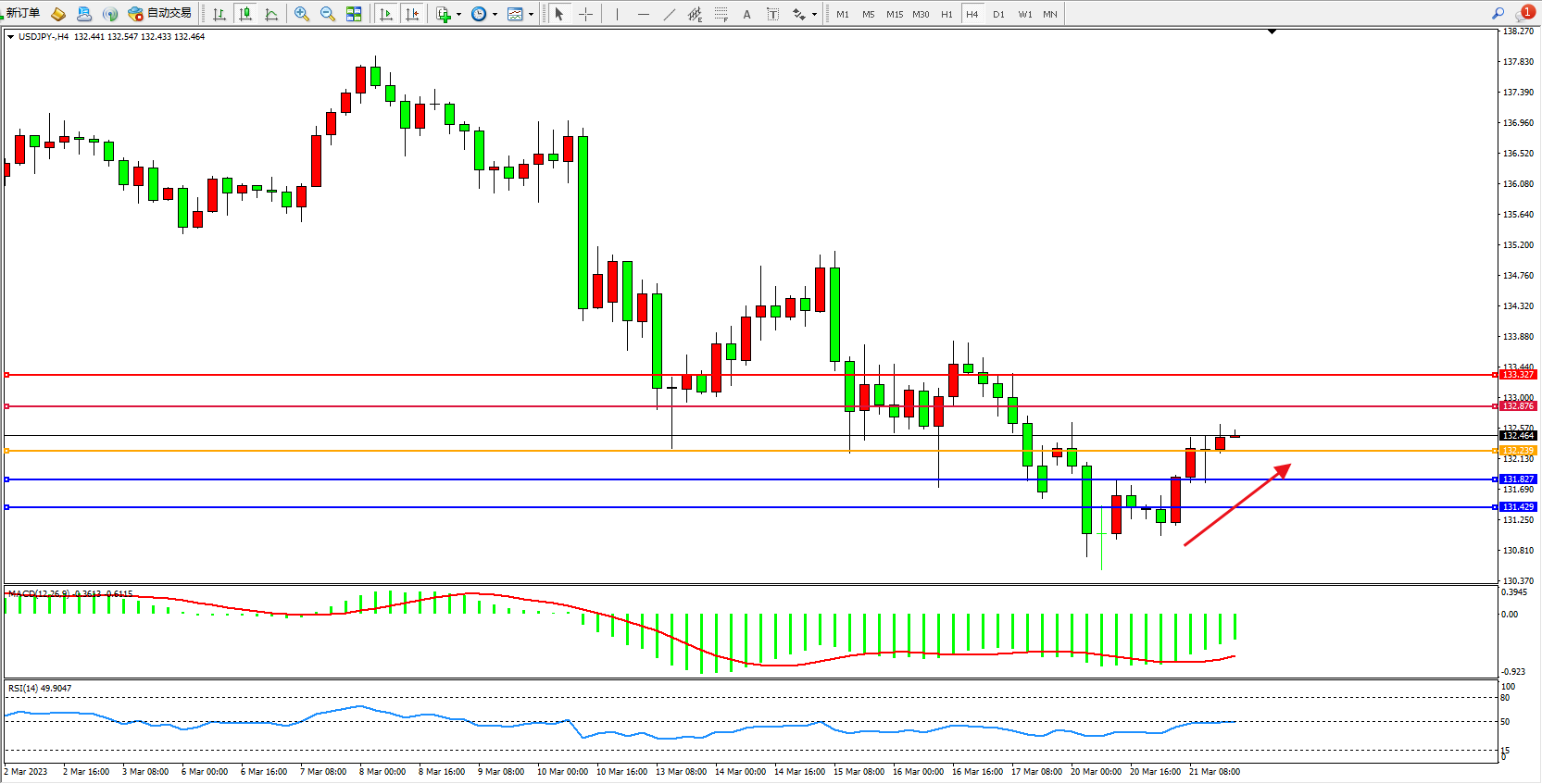 美元兑日圆维持132.464附近震荡,市场预期美联储周三有可能将利率维持在这个水平。美元利率峰值有望到来,似乎正在解除日元在息差方面的压力,日元再度恢复明显的强势回归姿态。