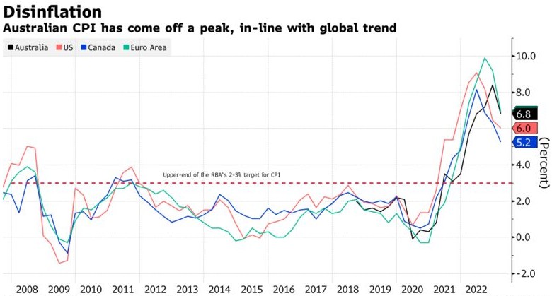 澳大利亚的加息规模一直落后于国际同行,这反映出澳洲联储主席洛威(Philip Lowe)为实现经济软着陆所做的努力。会议纪要显示,澳洲联储的目标仍然是在“保持经济平稳”的同时,在降低通胀的狭窄道路上航行。