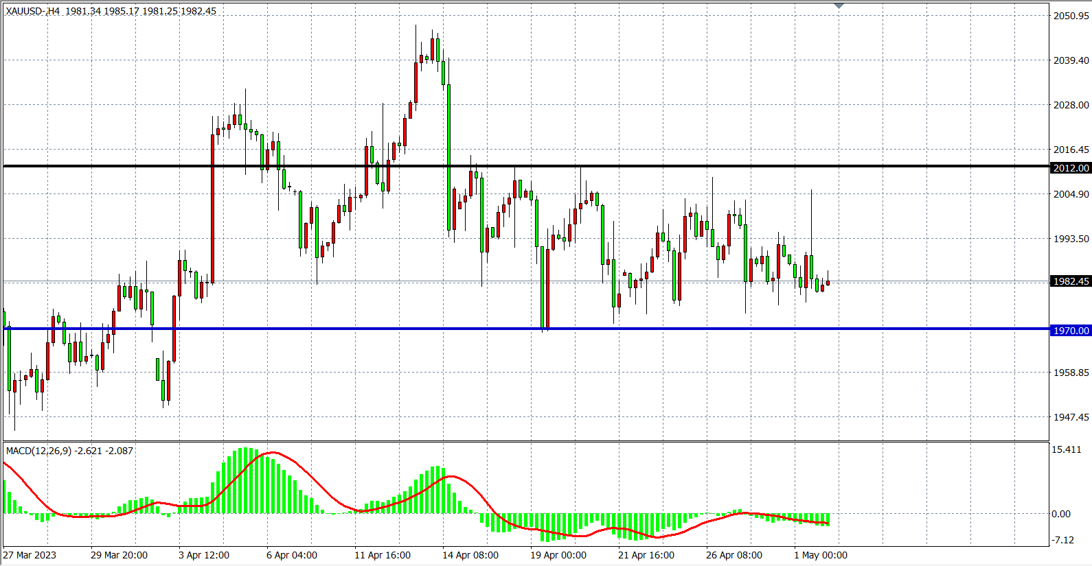 周一(5月1日)公布的数据显示,美国4月ISM制造业指数连续第六个月萎缩,创自2009年以来最长周期,但价格支付指数反弹至9个月最高水平,表明通胀压力仍存,因此市场押注美联储本周加息25个基点的概率又上升至94%,现货黄金受到美元和美债收益率双双走高的压制,最终冲高回落,再度走出“倒V”行情。