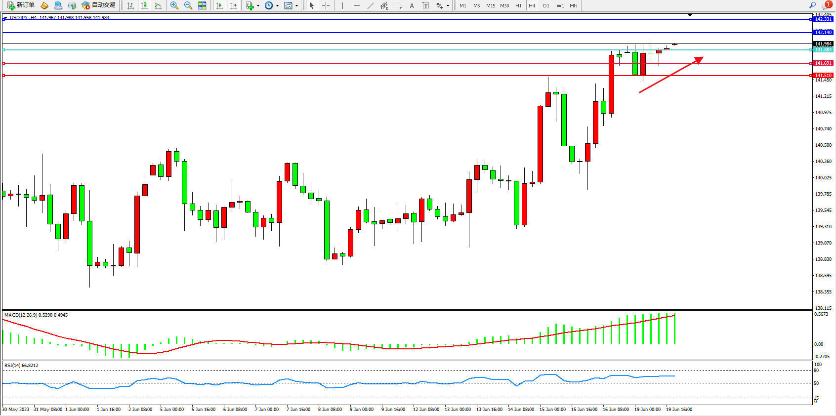 阻力位:142.140  142.331