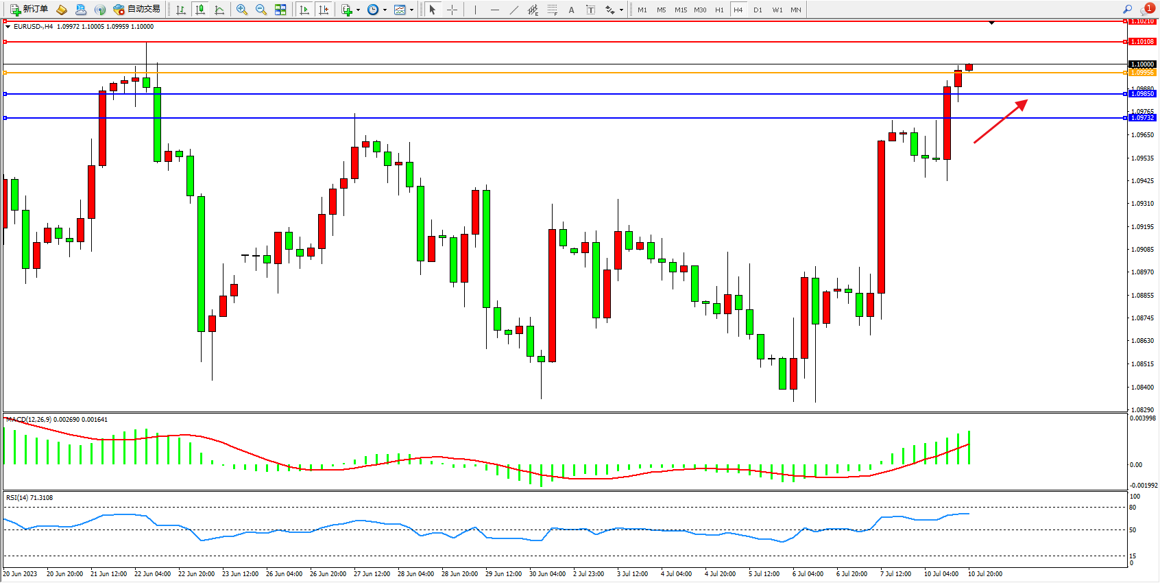 阻力位:1.10108 1.10210
