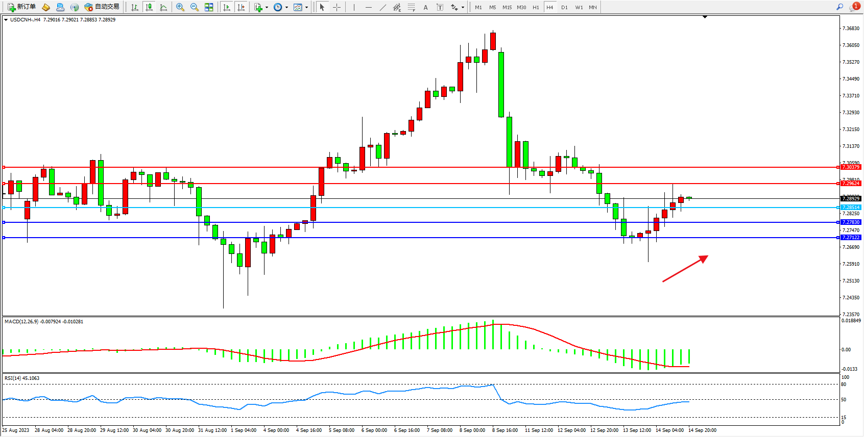 交易策略:7.28514上方看涨,目标7.29624  7.30379