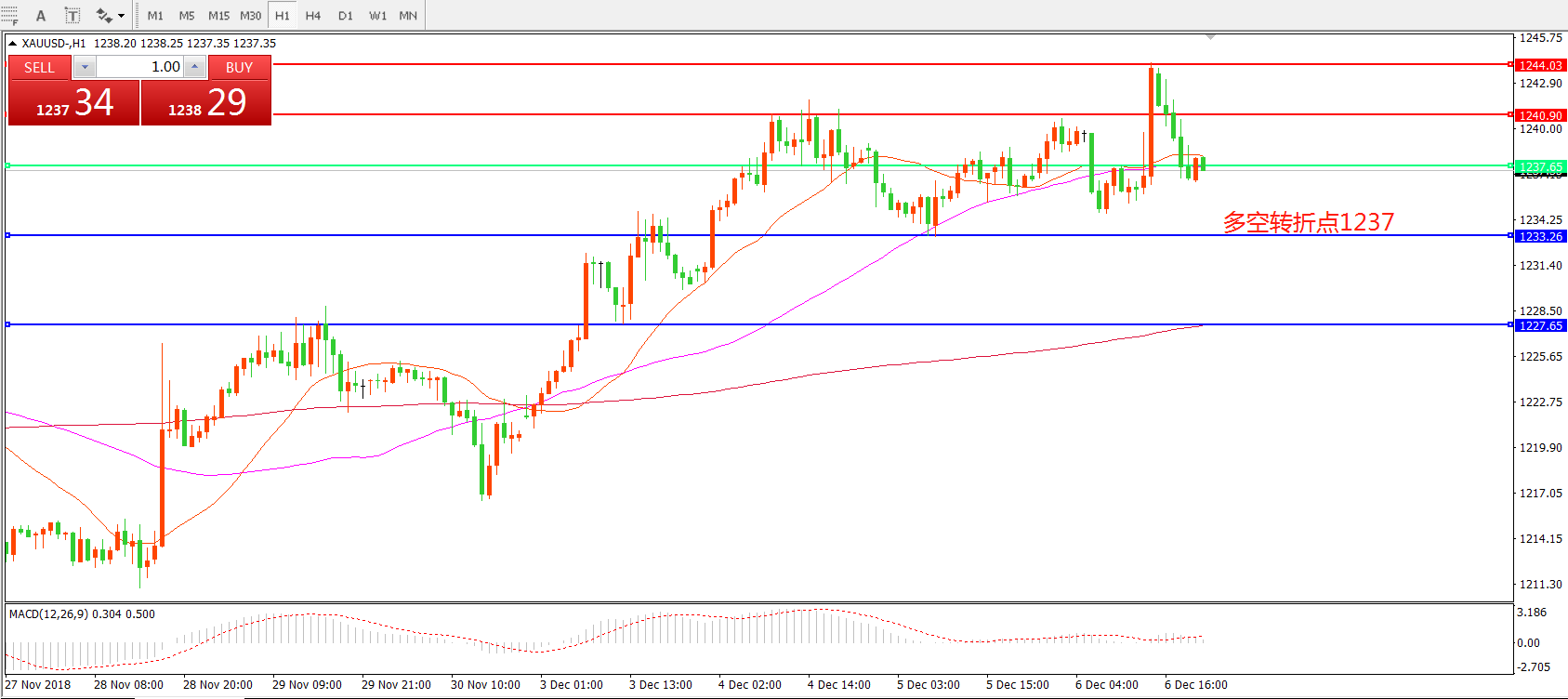 交易策略:在1237.00之上看涨,目标1240.00  1244.00