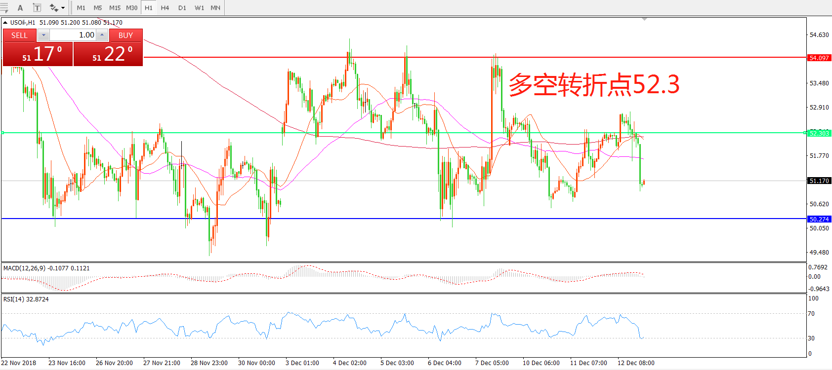 交易策略:在52.3之下看跌,目标51.50 50.00