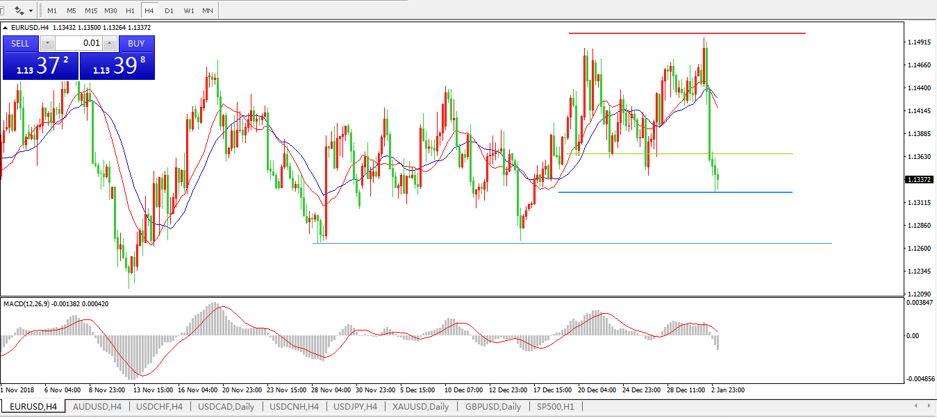 交易策略:在1.1365之下,看跌,目标价位为 1.1320 ,然后为1 .1270。